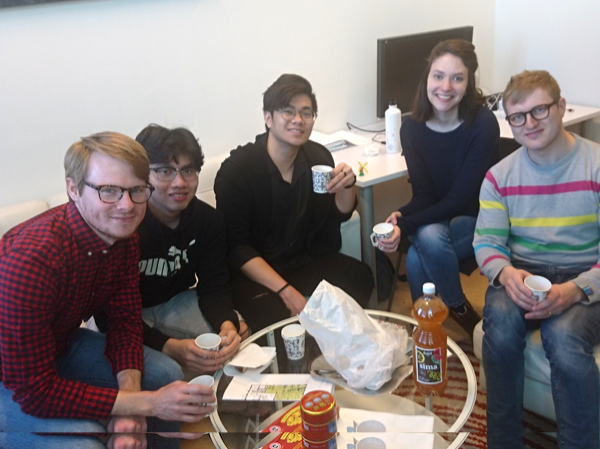 We try “Vappu Sima” (a fermented drink with lemon we drink for Vappu, which is the 1st of May, it’s the day of the workers) and donuts with a part of the team members!